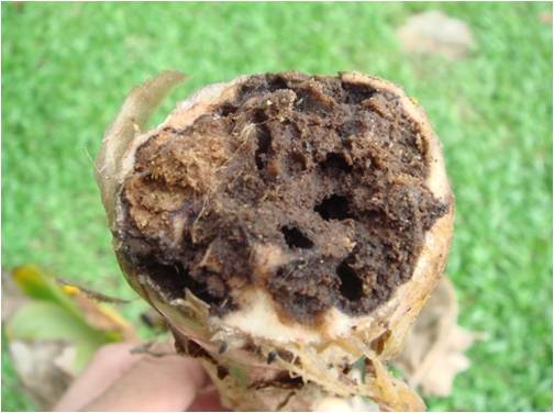 Damage occurs progressively as the hands lift and increases in severity towards the banana aphid. Damage due to insects can greatly reduce the marketability of banana.